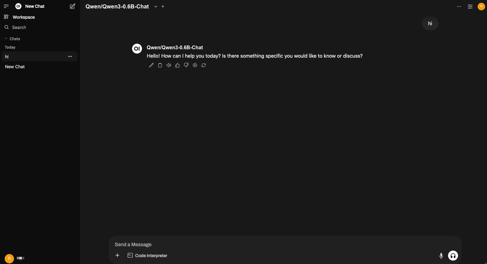 At the top of the page, you should see the model Qwen/Qwen3-0.6B-Chat.
